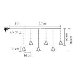 • Méretek: füzérek közti távolság: 30 cm fenyő figura magassága: 11 cm gerinctől a lelógások a figurák aljáig: 60 cm / 80 cm